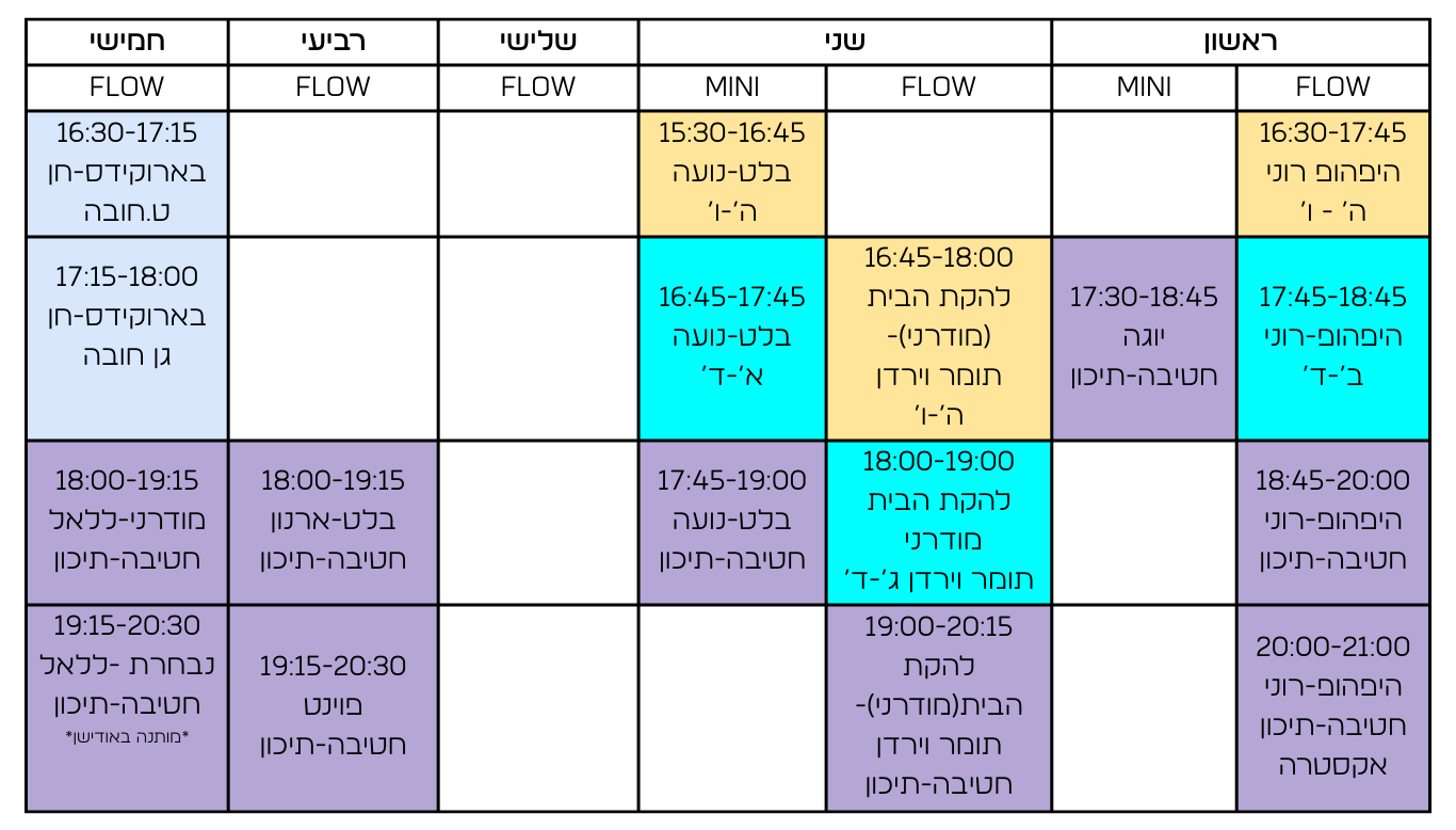 המסלול כולל לפחות 4 שיעורים בשבוע: